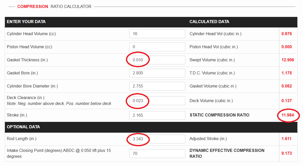 Your choice of either ARC 6256 3.328" or ARC 6252 3.348" connecting rods with optional 22.5mm CH flat top piston for 11.7:1 compression ratio with a 0.010" thick head gasket.